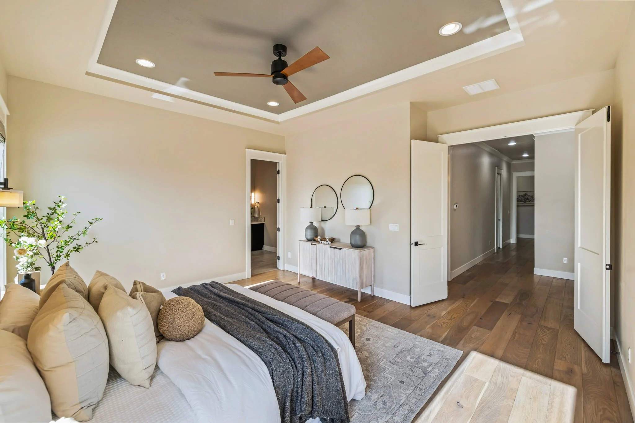 • Spa-Like Primary Suite with Timed Heated Floors, Quartz Dual Vanities, and Designer Tile Accents